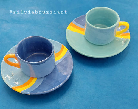 Tazze e tazzine in ceramica decorate a mano con tecniche pittoriche che esaltano colori intensi e vibranti. Piccole creazioni dallo stile deciso, perfette come regalo o bomboniera originale, capaci di trasformare un semplice gesto quotidiano in un ricordo ricco di personalità e arte.