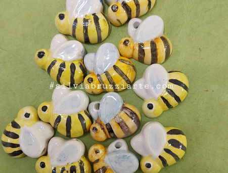 Margherite, girasoli e apette in ceramica fatti e dipinti a mano